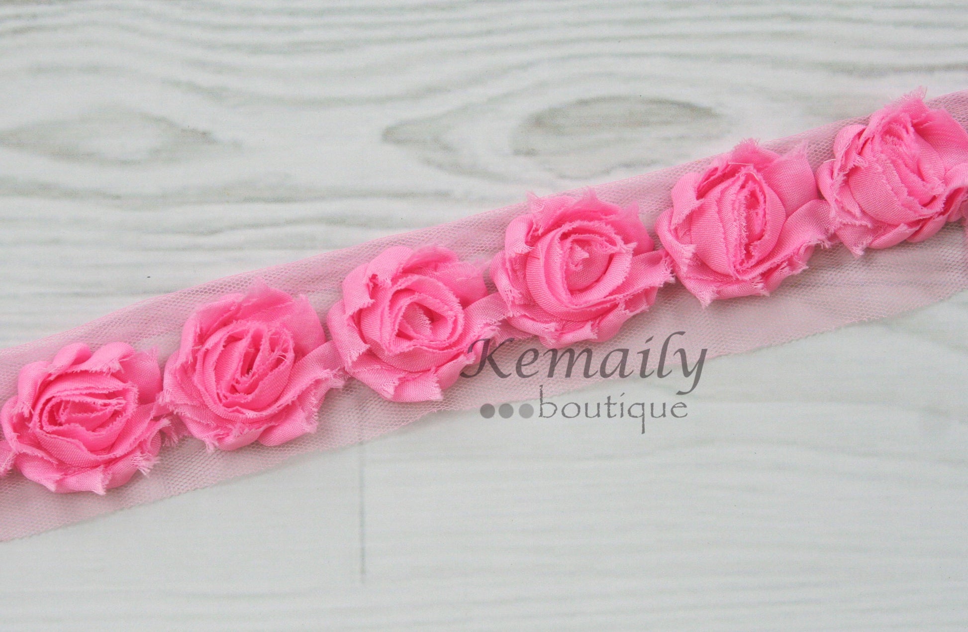 Our white chiffon flowers measure approximately 2.5", you'll receive roughly 13-14 flowers per yard.