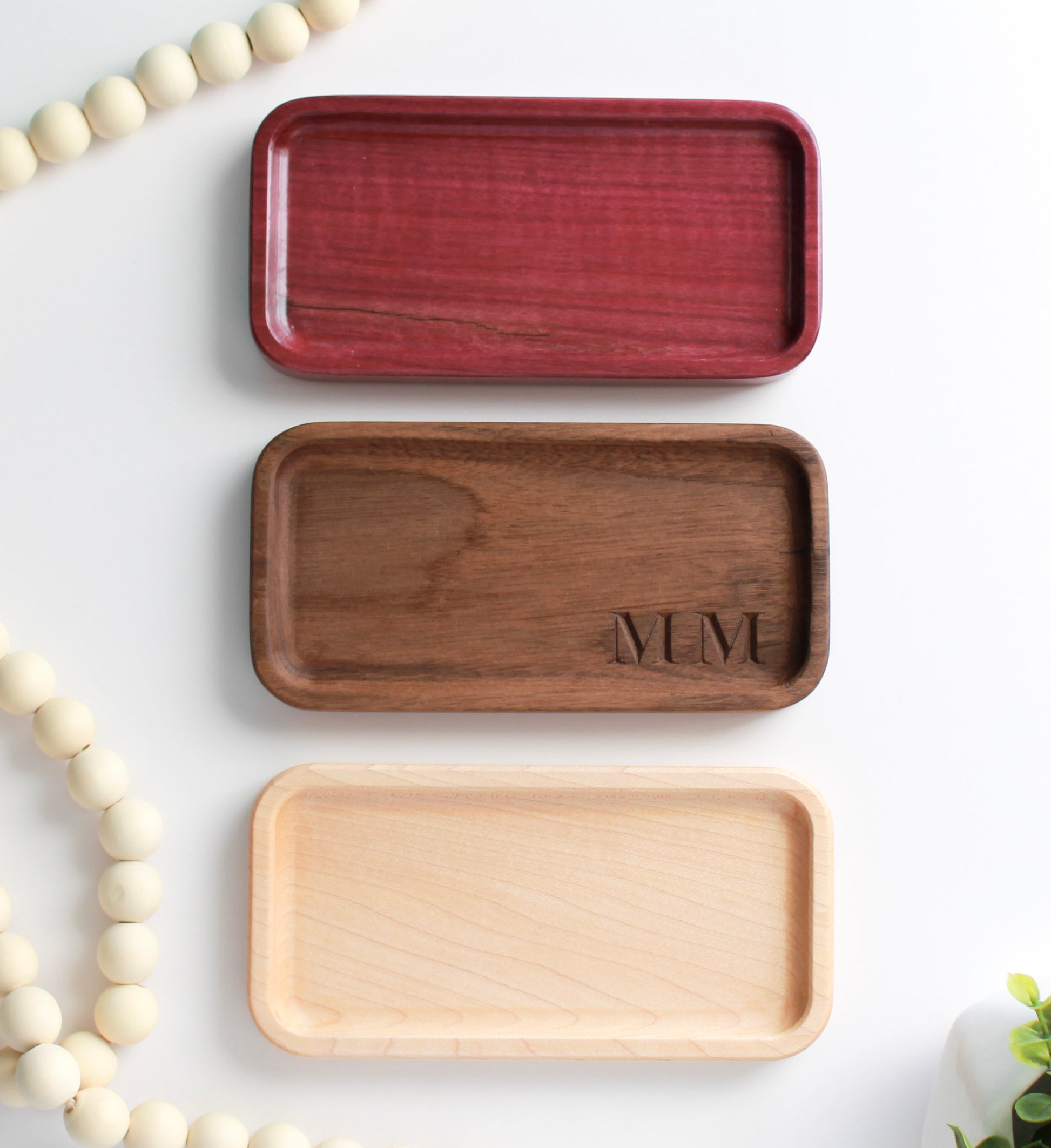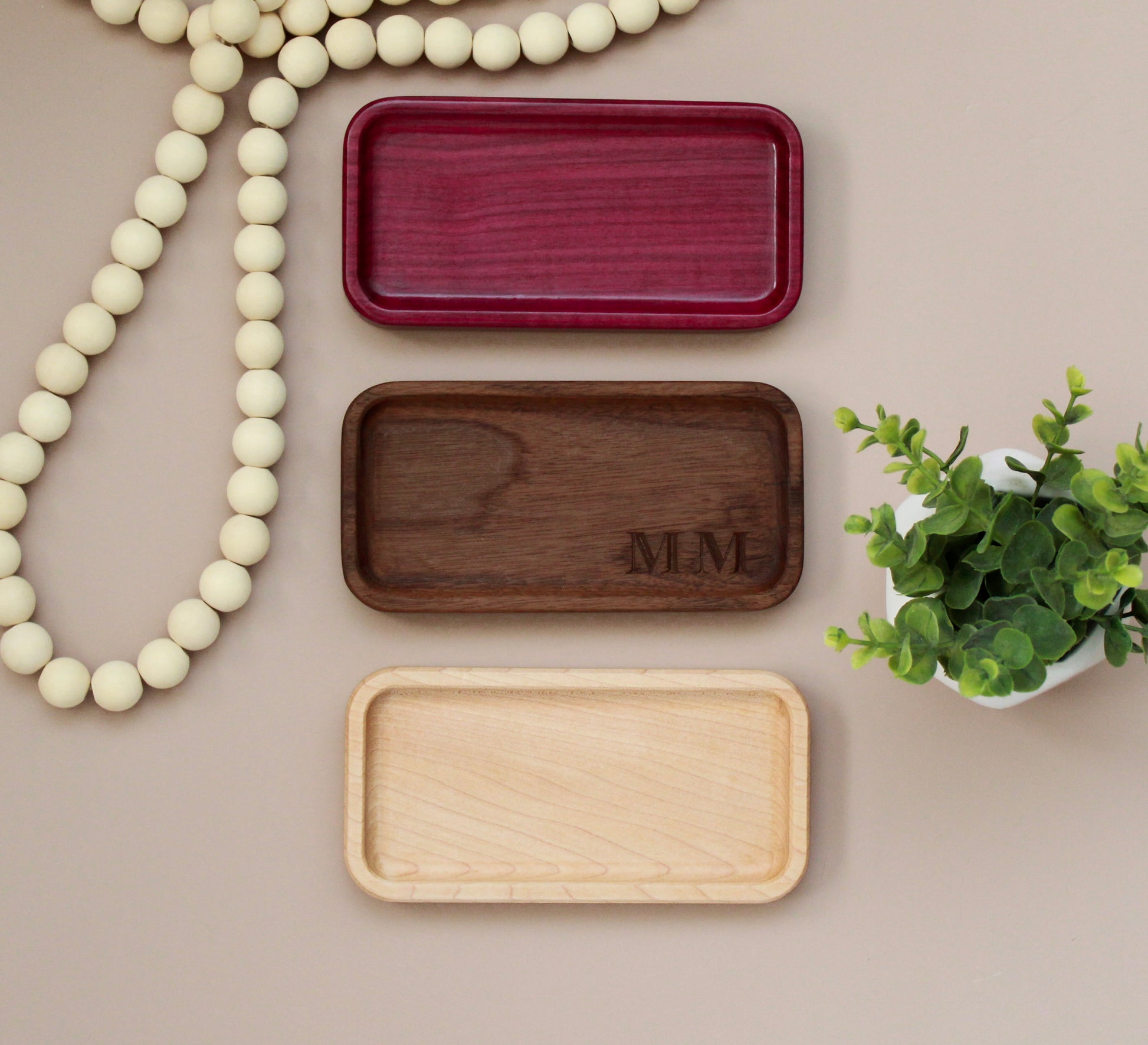 Handcrafted with care from locally sourced hardwood, each tray is hand-finished with sanding and oiling for a smooth, natural look. Ideal for organizing your desk, dresser, or nightstand! Our trays also make a thoughtful gift for weddings, housewarmings, or any special occasion.
