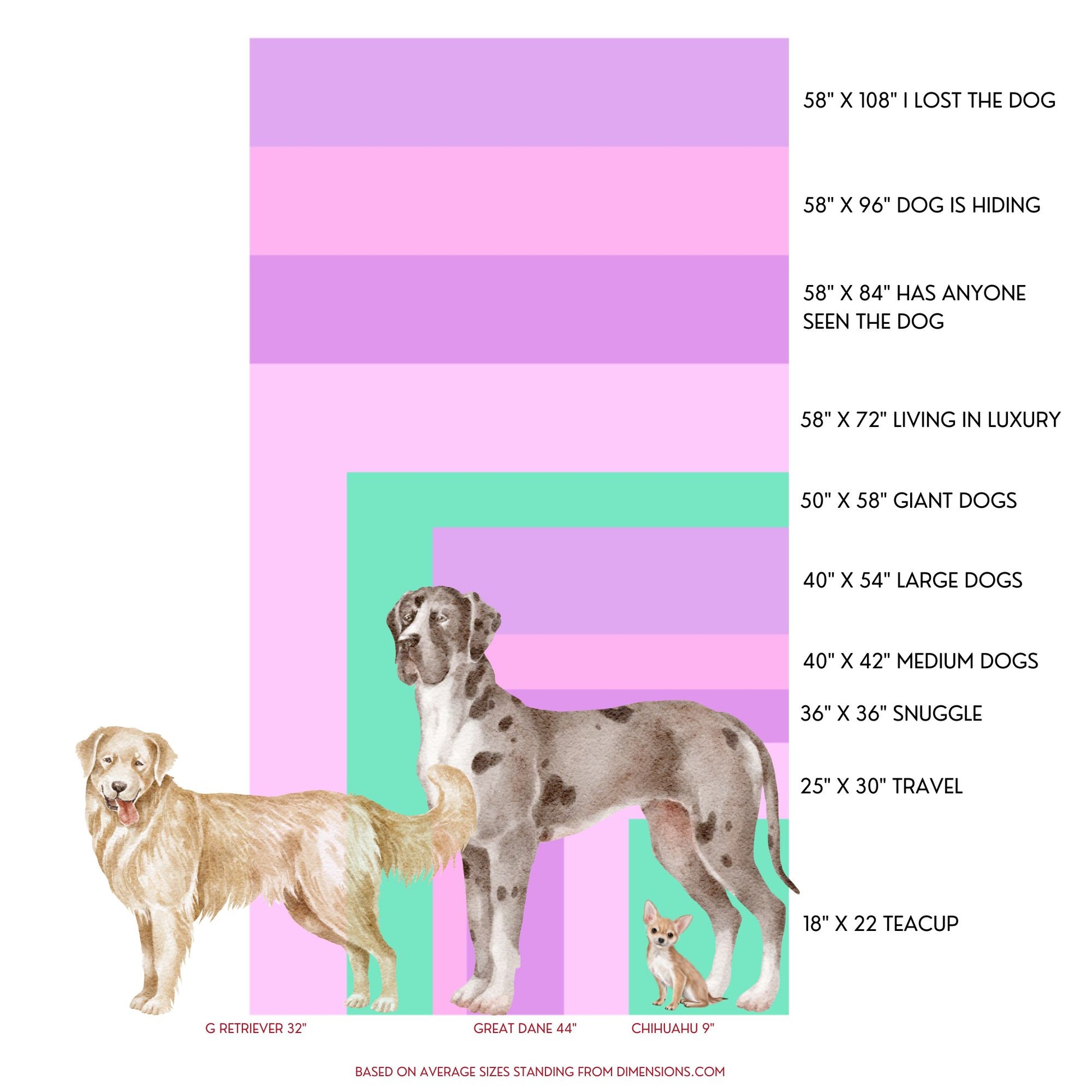 50”x60”: For those large dogs that want to sprawl across the expanse of pure plushness, our luxurious minky blanket beckons.
