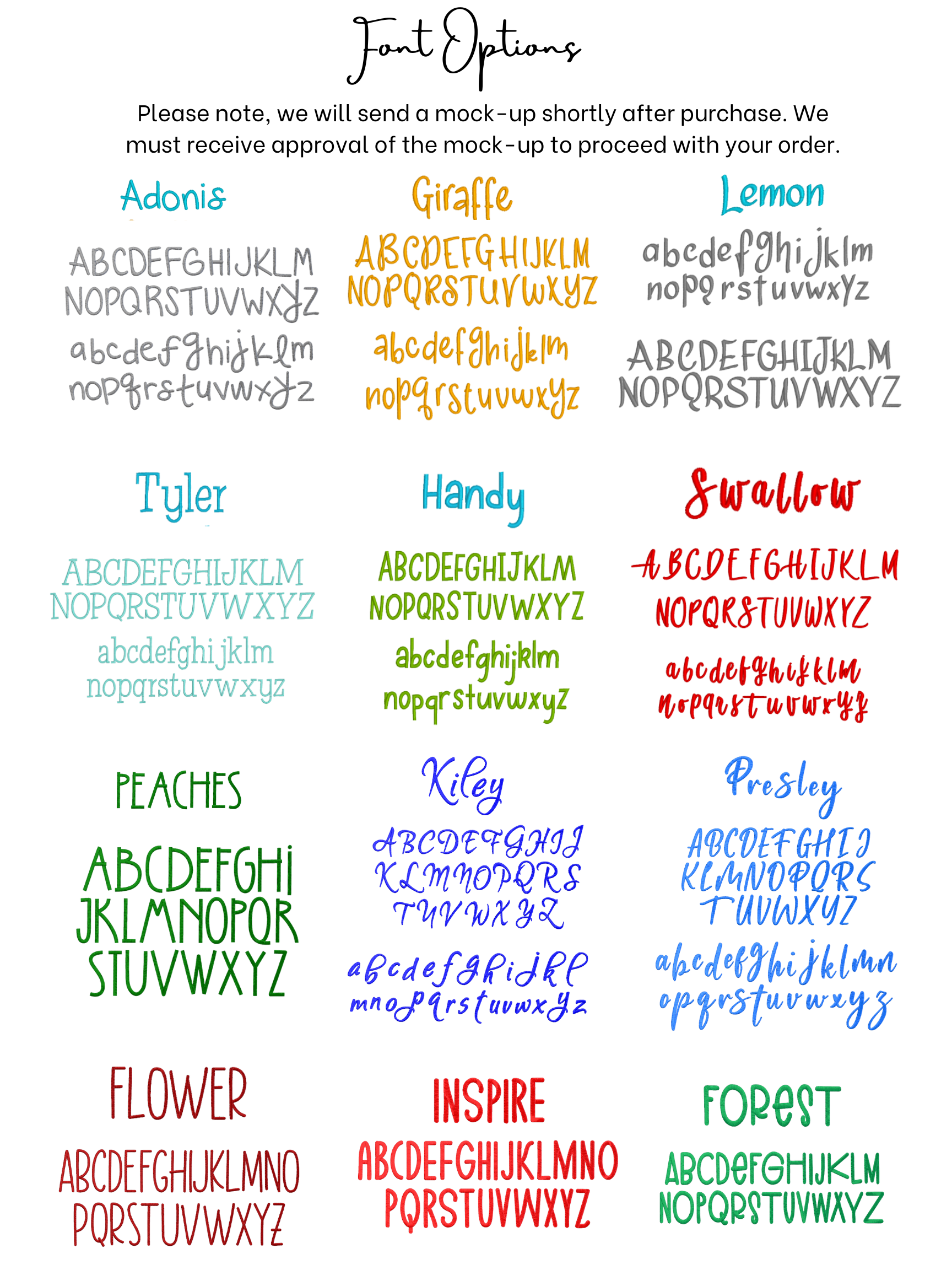 Fast shipping! Great quality!! And loved she sent a sample of the font you picked plus the other options! Highly recommend will definitely