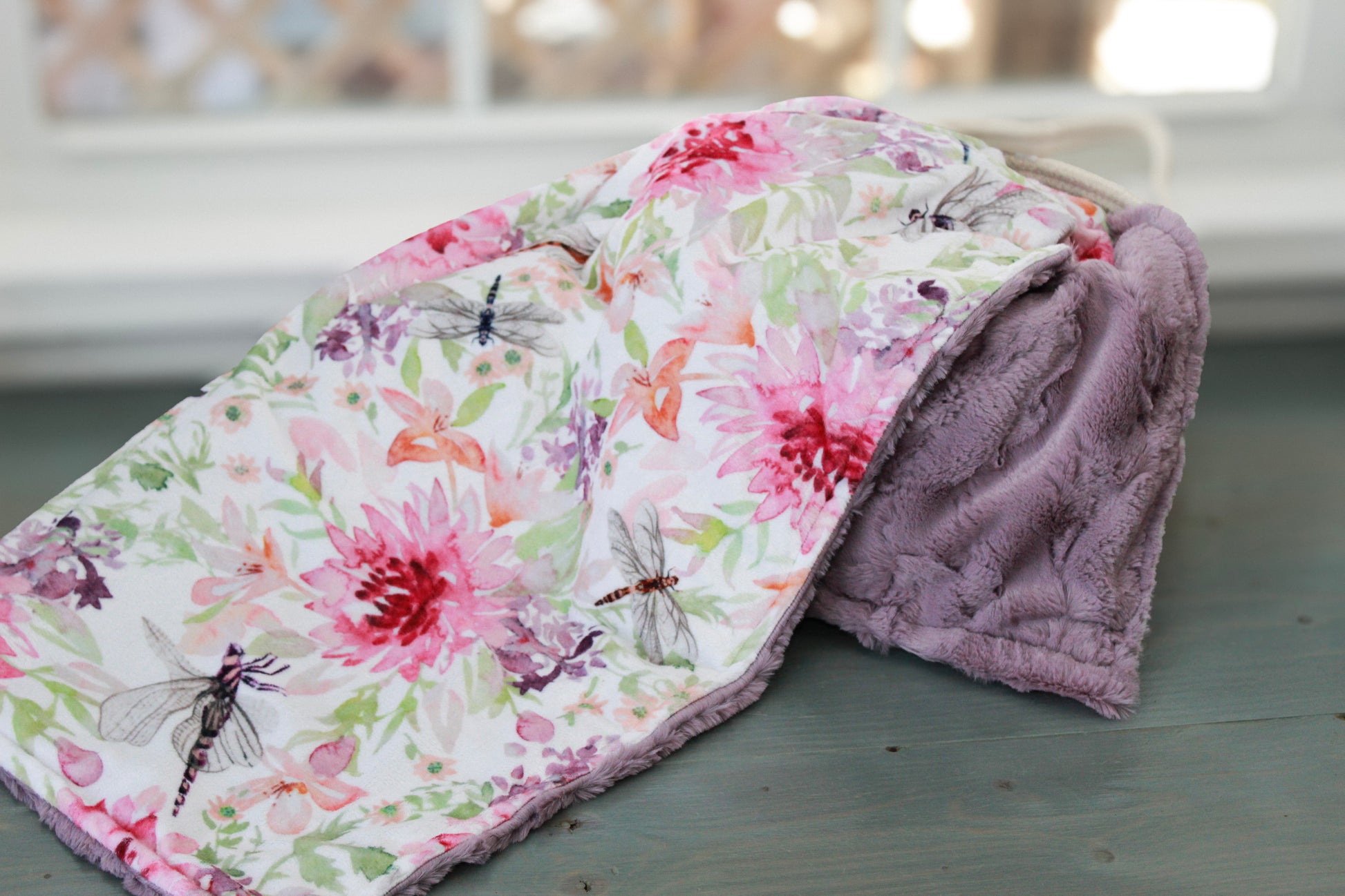Personalized Baby Blanket, Dragonfly Minky Baby Girl Blanket