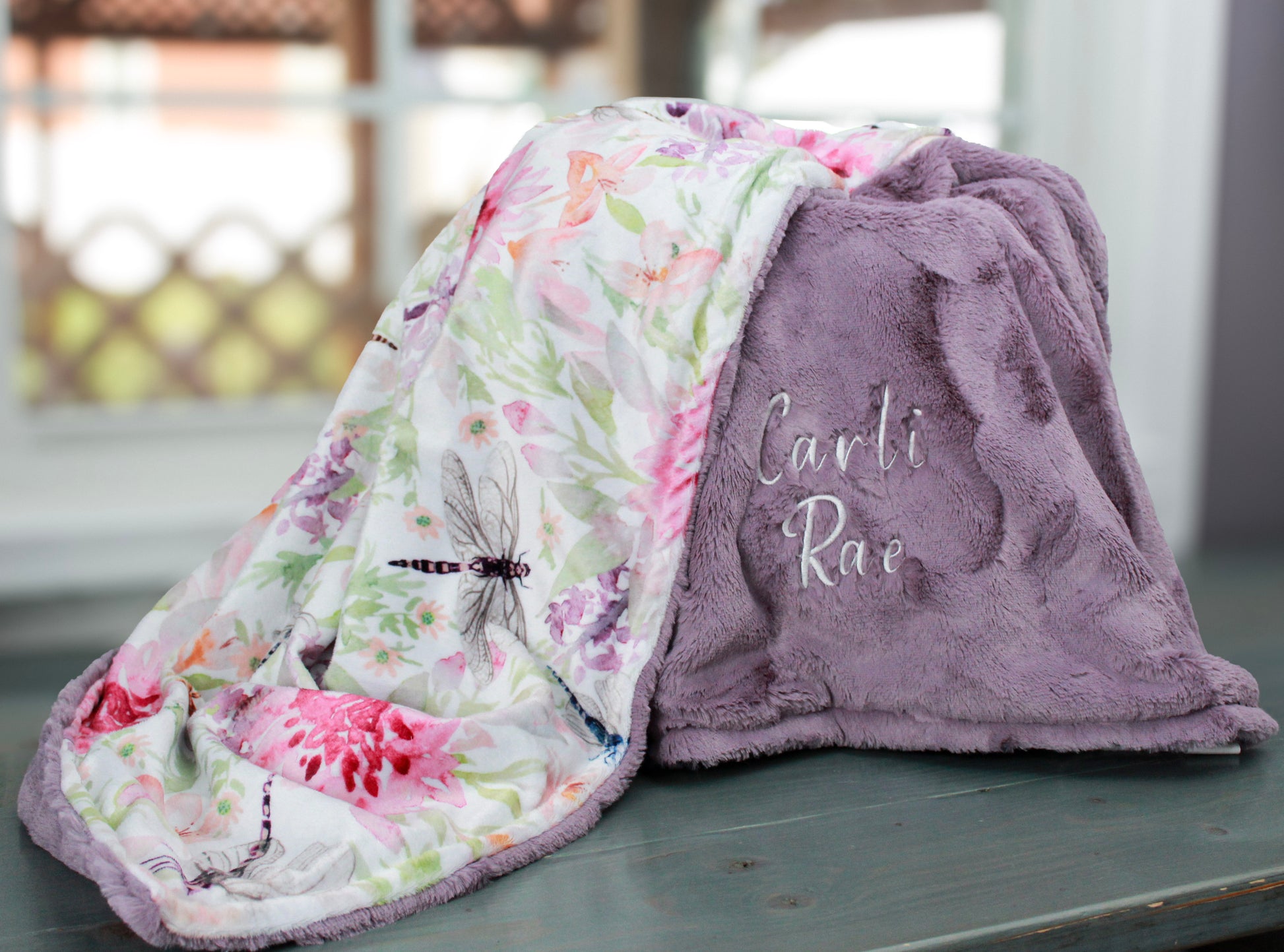 Personalized Dragonfly Baby Blanket – Custom Name Minky Blanket for Girls, Soft Newborn Baby Shower Gift