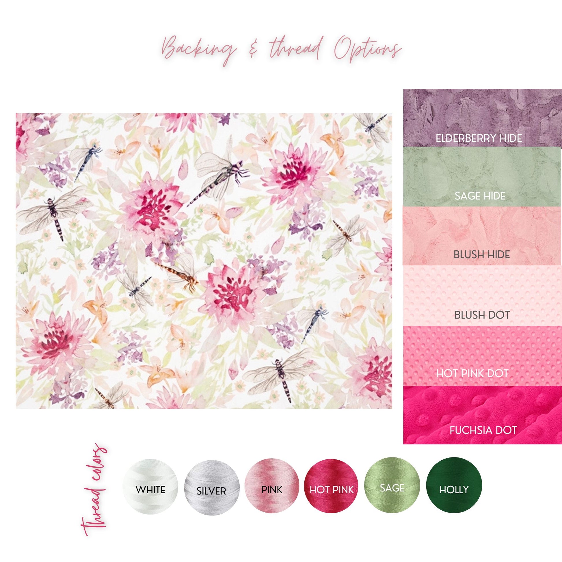 This personalized dragonfly baby blanket features ultra-plush minky fabric and your baby’s name beautifully embroidered for a one-of-a-kind touch. Designed with a delicate dragonfly pattern, it adds a whimsical, feminine feel to any nursery.