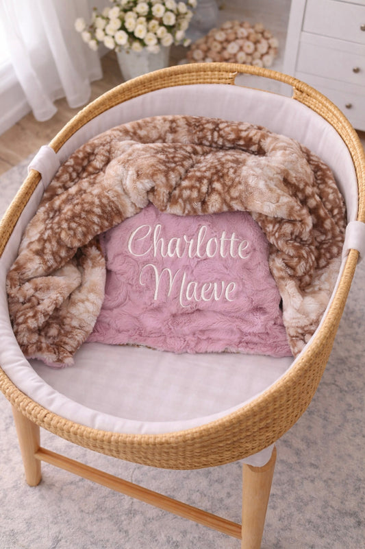 Personalized Fawn Baby Blanket – Pink Minky Custom Name Woodland Blanket for Baby Girl